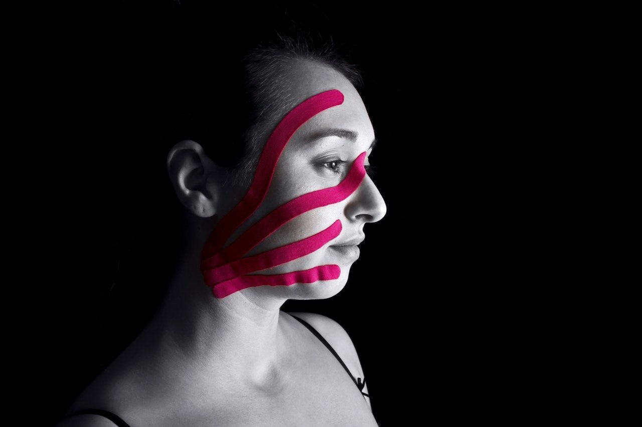 Слегка разотрите приклеенную полосу пальцами, чтобы клейкое место ровно распределилось по тейпу. Чтобы не появилось больных ощущений при снятии ленты, сделайте депиляцию зоны, на которую следует приклеить тейп-полоску. Чтобы концы ленты не резали кожу, лучше «закруглите» их ножницами (делать это нужно по линии отреза).